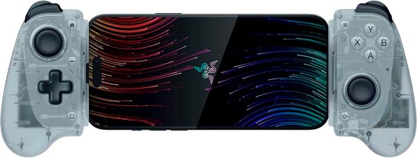 Controlador móvil con diseño translúcido que extiende el universo Phantom a los dispositivos portátiles, ideal para revivir juegos clásicos en cualquier lugar.