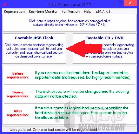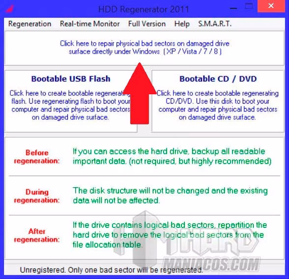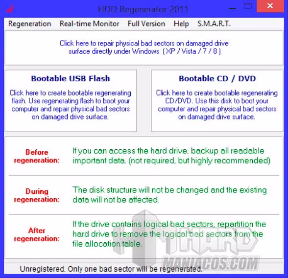 Esto nos permitirá probar el HDD Regenerator y ver si realmente nos vale la pena adquirir una copia. Acto seguido, seleccionamos la opción que mejor se nos adapte a nuestro caso. Aquí en Hardmaniacos, os comentaremos todas las que tiene.