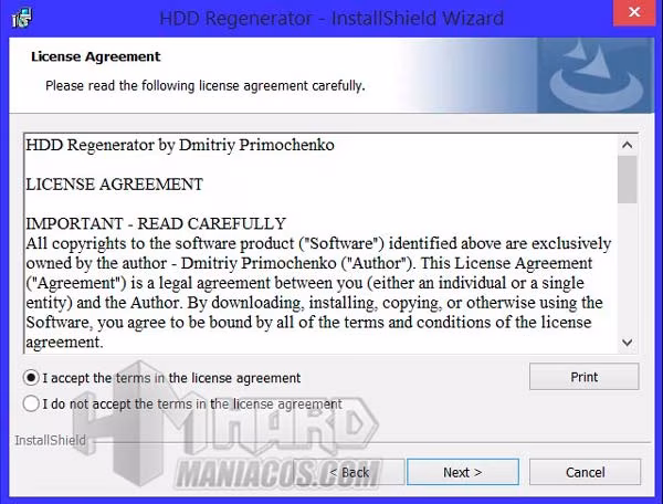 Una vez descargado el HDD Regenerator free para Windows, procedemos a su instalación. Para ello, deberemos pinchar en el ejecutable y seguir los siguientes pasos que os dejo a continuación en imágenes.