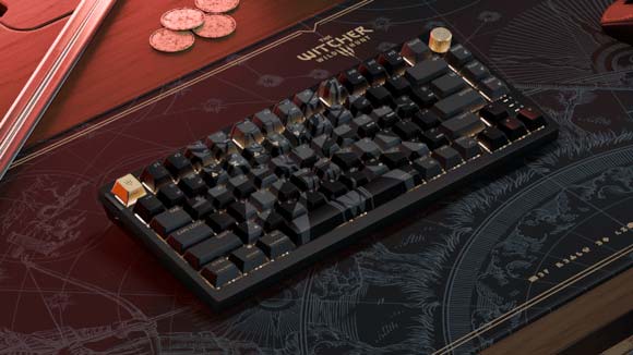 El protagonista de la colección es el CORSAIR K65 PLUS WIRELESS, un teclado mecánico RGB 75 %, diseñado con detalles únicos inspirados en The Witcher 3.