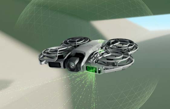 La tecnología interpreta el entorno en tiempo real y toma decisiones rápidas para ajustar la trayectoria cuando detecta algo cerca. Esto lo hace ideal para volar en zonas complejas, como espacios estrechos, interiores amplios o caminos con vegetación.