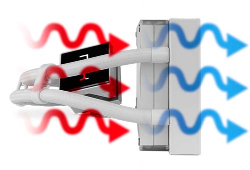La bomba de alto rendimiento asegura un elevado caudal de líquido refrigerante, permitiendo una rápida disipación del calor y favoreciendo un flujo de aire constante en el interior del equipo, manteniendo la CPU a temperaturas óptimas en todo momento.