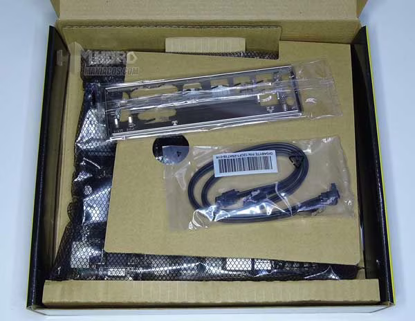 Abrimos la caja, y nos encontramos en primer plano, con el backplate, junto a una bolsa con 2 cables SATA.
