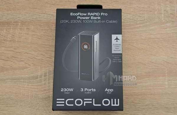 En esta ocasión, vamos a probar el power bank EcoFlow RAPID Pro, el cual se trata de un power bank de última generación de la serie RAPID de EcoFlow, lanzada recientemente. Este cuenta con una capacidad de 20.000mAh de batería, junto con varios puertos para conectar diferentes dispositivos al mismo tiempo y mantenerlos recargados.