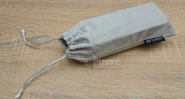 Además, para mejorar su transporte, nos viene con una bolsa protectora de color beige, de tacto suave, con unos cordeles para cerrarla y fácil de poner.