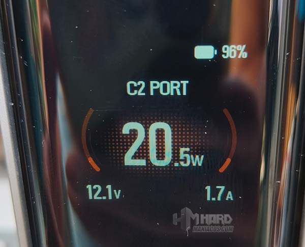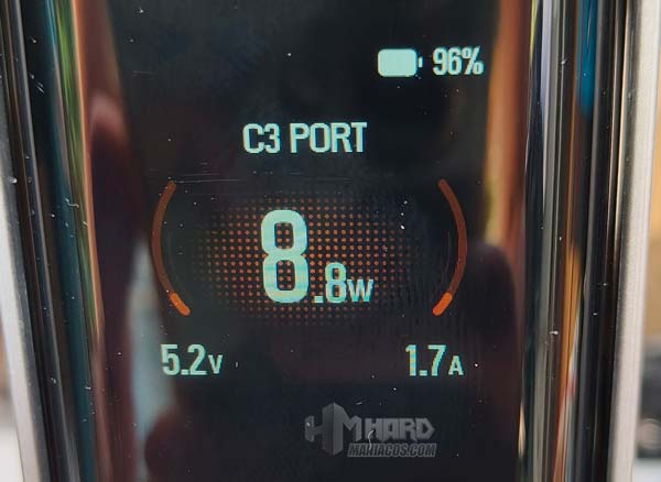 Otra de las pruebas que hemos hecho es la recarga de varios dispositivos al mismo tiempo. Cabe indicar que, para poder realizarla, necesitaremos cables con conexión USB-C; por lo que, algo que nos hubiera gustado, es que trajera algún USB-A, lo que mejoraría la compatibilidad de recarga.