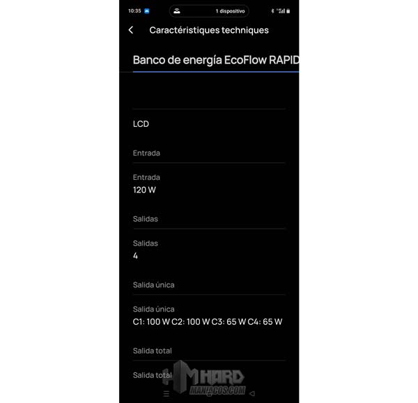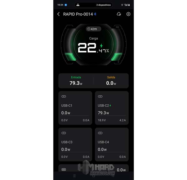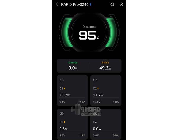En un primer vistazo, nos aparece el estado de la batería, así como también si se está cargando o el uso de cada puerto; además de indicarnos el tiempo que falta para finalizar la carga o el tiempo que nos da la batería con los consumos actuales.