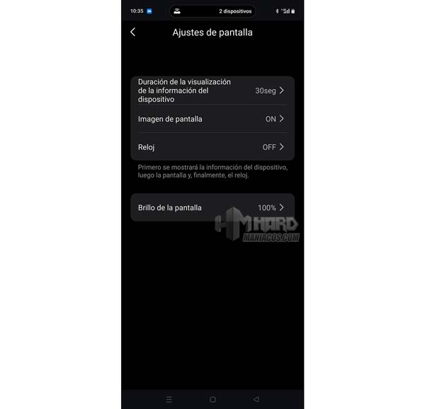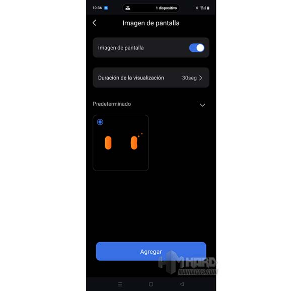 Otra de las opciones que tenemos en la pantalla, es la de añadir un reloj, muy práctico si necesitamos saber la hora y no llevamos reloj con nosotros.