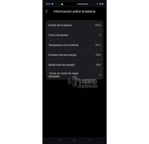 Asimismo, también nos permite ver la información de la batería o las características de la unidad.
