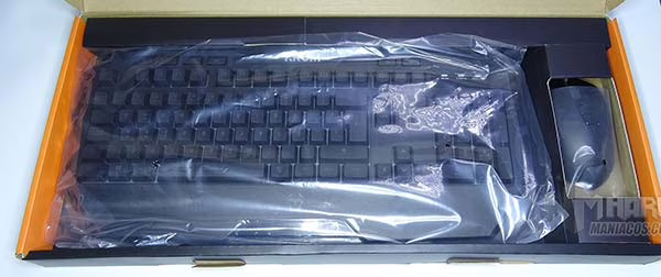 Abrimos la caja, encontrándonos perfectamente protegido por un plástico, tanto el teclado como el ratón, ambos en su respectivo hueco.