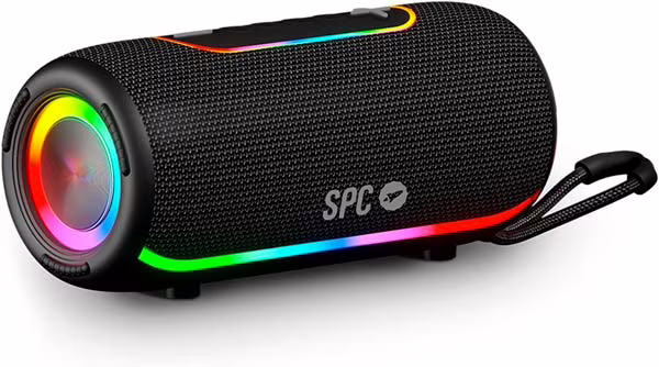 El SPC ORBITAL GLOW se posiciona como el punto intermedio de la gama, combinando 25 W de potencia con un sonido detallado y bien definido. Su doble membrana refuerza los graves sin perder claridad, lo que lo convierte en una opción muy versátil tanto para interiores como para reuniones con amigos.