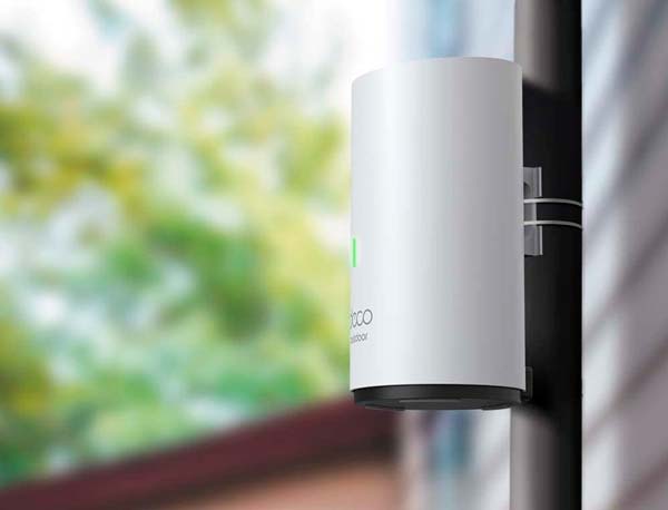 Por otro lado, para el exterior, contamos con el TP‑Link Deco X50‑Outdoor. Este nodo Deco con Wi-Fi 6 Mesh (AX3000) está especialmente diseñado para exteriores: tiene protección IP65, lo que lo hace resistente al polvo, la lluvia y condiciones climáticas adversas. Ofrece hasta 3,0 Gbps combinados en 5 GHz y 2,4 GHz, y se alimenta por PoE (Power over Ethernet) o mediante adaptador, lo que facilita su instalación sin cables adicionales. Además, se puede montar en poste o pared, y se integra perfectamente con otros Decos para expandir la red Mesh a terrazas, jardines o espacios al aire libre.